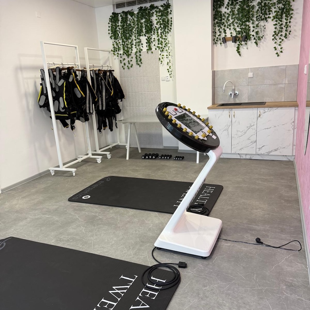 Ve studiích využíváme vlastní designové a efektivně sestavené cvičící stroje a elektrody vyrobené na míru pro potřeby našich klientů i obsluhy Healthy Twenty. Prioritou je pro nás Vaše soukromí a klid na cvičení, proto k Vám vždy přistupujeme individuálně, exkluzivně a trénink patří pouze Vám, maximálně Vám a tréninkovému partnerovi, kterého vezmete s sebou. Můžete tak v soukromí probrat společně s námi své specifické požadavky, omezení či jiné potřeby.